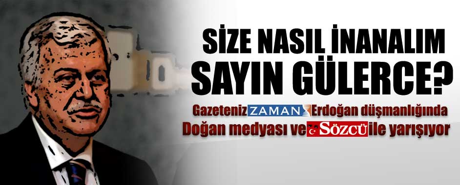 MEDYAGUNDEM.COM- Zaman gazetesinde Hüseyin Gülerce bugün iyi niyetinden şüphe etmediğimiz biçimde medyadaki “Erdoğan düşmanlığı”nı eleştirdi. Bakın şu satırlatra: “Medya-hükümet ilişkilerinde medyada yanlışların temelinde, AK Parti’yi eleştirmek yerine, düşmanlık yatıyor. Sanki karşımızda iktidar değil düşman var. Birileri bunu, ‘Erdoğan gitsin, AK Parti’den kurtulalım’ diye evet kasten, organize ve profesyonelce yapıyor. Bazıları …