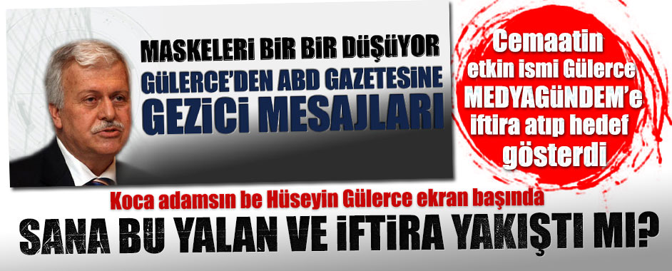 MEDYAGUNDEM.COM- Dün tüm internet sitelerinde bir haber yer aldı. Haber, cemaatin etkin isimlerinden Hüseyin Gülerce’nin ABD’deki New York Times gazetesine yaptığı açıklamalardı. Her sitede olan haber MEDYAGÜNDEM’de de aynen yer aldı. MEDYAGÜNDEM haberi manşetine “Maskeler bir bir düşüyor, Gülerce’den ABD gazetesine Gezici mesajlar” başlığıyla çekti. Hüseyin Gülerce bu haberimiz üzerinden …