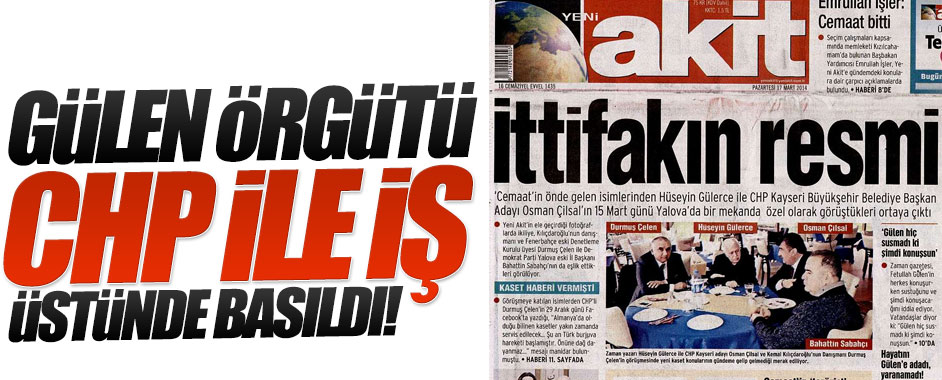 ‘Cemaat’in önde gelen isimlerinden Hüseyin Gülerce ile CHP Kayseri Büyükşehir Belediye Başkan Adayı Osman Çilsal’ın 15 Mart günü Yalova’da bir mekanda gizlice görüştükleri ortaya çıktı. Akit’ten Osman Yiğit, ‘Cemaat’in önde gelen isimlerinden Hüseyin Gülerce ile CHP Kayseri Büyükşehir Belediye Başkan Adayı Osman Çilsal’ın 15 Mart günü Yalova’da Tigem Beyazbahçe Cafe’de …