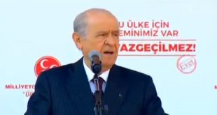 MHP lideri Devlet Bahçeli, referandum çalışmaları kapsamında Afyonkarahisar’a gitti. Afyonkarahisarlılara seslenen Bahçeli, “Evet çıkarsa İzmir’den denize dökeriz” diyen CHP’liye sert çıktı. LAF ETTİ BAL KABAĞI, KOY TABAĞA YE SABAHA “Bir CHP milletvekili diyor ki: ‘Diyelim ki evet çıktı kimse heveslenmesin, Samsun’dan başlarız İzmir’e kadar kovalamazsak anamızdan emzidiğimiz süt helal olmasın. …