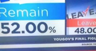 Birleşik Krallık ile Avrupa Birliği arasındaki ilişkilerin geleceğini ve ülkenin birlik üyeliğinin devam edip etmeyeceğini belirleyecek kritik referandumda oylar sayılıyor. AB’den ayrılma yönünde oy kullananlar yüzde 52 ile önde gidiyor. İngiliz basını, referandumda ‘AB’den ayrılma’ yönündeki sonucun garantilendiğini duyurdu. Birleşik Krallık ile Avrupa Birliği (AB) arasındaki ilişkilerin geleceğini ve ülkenin …