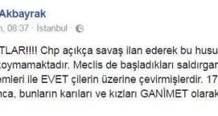 İstanbul Büyükşehir Belediyesinde çalışan bir FETÖ’cü it, provokasyon amacıyla ortalığı karıştırdı. Hayır oyu verenlere çirkin aşağılık ifadelerle saldıran sapık Fetullahçının görevden alınması yetmez. İstanbul Büyükşehir Belediyesi (İBB) Haller Müdürlüğü çalışanı Ömer Akbayrak adlı kişi Facebook hesabından skandal bir paylaşımda bulunmuştu. AÇIĞA ALINDI Oldukça tepki toplayan bu paylaşım sonrası İstanbul Büyükşehir …