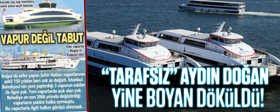 İstanbul için alınan yeni vapurlar için “tabut” gibi benzetmeler yapan Doğan Medyası, İzmir’de kullanılan vapurlar için tek satır yazmadı. İstanbul Büyükşehir Belediye Başkanı Kadir Topbaş’ın katıldığı törenle 3 adet yeni vapur, İstanbulluların hizmetine sunulmak üzere suya indi. DOĞAN MEDYA VAPURLARI BEĞENMEDİ İstanbul Boğazı’nın güçlü akıntısı, poyraz ve lodosa karşı güçlü …