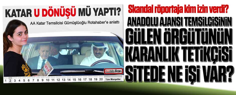 MEDYAGUNDEM.COM- Anadolu Ajansı Katar Temsilcisi Feyza Gümüşlüoğlu skandal bir röportajla Gülen örgütünün yalan, iftira, kara propaganda sitelerinden Rotahaber’e açıklamalar yaptı. “Fuat Avni” isimli Gülen örgütünün suç makinesinin de yazarı olduğu karanlık siteye bir Anadolu Ajansı çalışanının röportaj vermesi büyük skandal olarak değerlendirildi. Gülen örgütünün “haysiyet cellatlığı listesi”nde olan ve paralel …