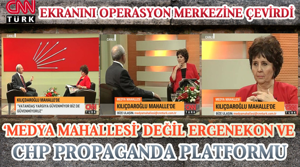 MEDYAGÜNDEM- CNN Türk ekranını “Medya Mahallesi” adı altında “Ergenekon ve CHP yoldaşlığı” platformuna çeviren, “Medya mahallesinin ablası” maskesiyle aslında “Ergenekon ablası” olan, programını hükümete karşı tam bir “psikolojik operasyon merkezi”ne dönüştüren Ayşenur Arslan, bugün de CHP Genel Başkanı Kemal Kılıçdaroğlu’nu konuk etti. “Medya Mahallesi”ni sırf CHP propagandasının yapıldığı “siyaset mahallesi”ne …
