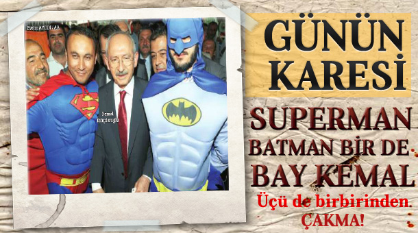 MEDYAGÜNDEM- Bugün gazetelerde yer alan, “candaş Posta”nın bile “Aranan kan bulundu” diye kafa bulduğu, “Anadolu Ajansı” kaynaklı bir fotoğraf karesi, günün de fotoğrafı olarak dikkat çekti. CHP Genel Başkanı Kemal Kılıçdaroğlu, çizgi film karakterleri olan Superman ile Batman kıyafeti giymiş iki adamın arasında poz vermişti. Son dönemdeki performansı ve gaflarıyla …