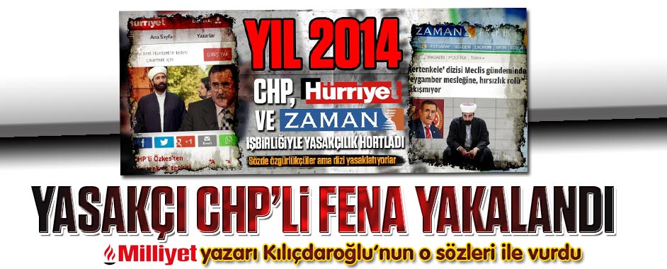 MEDYAGUNDEM.COM- Paralel örgütün yalanlarıyla peşine taktığı Diyanet’ten sonra CHP de topa girerek ATV’nin Kertenkele dizisinin RTÜK tarafından kaldırılmasını istedi. Sözde “özgürlükçü” CHP 2014 yılında paralel örgütün yalanlarıyla yasakçılığa soyundu. Paralel örgüt ve CHP’nin “yasakçılık”a varan kirli ittifakında Hürriyet ve Zaman gazetesi de başrol oynadı. Eski müftü olan CHP İstanbul Milletvekili …