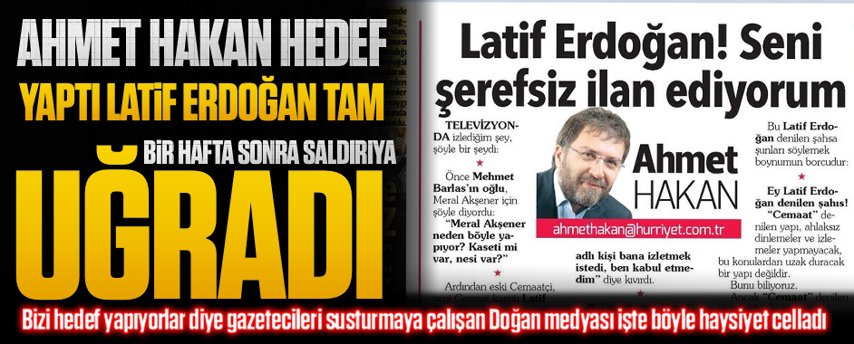 Hedef gösterilmekten şikayet eden Aydın Doğan medyasının Latif Erdoğan’a saldırı olayının bizzat azmettiricisi olduğu unutldu. Oysa Ahmet Hakan çirkin bir yazıyla Latif Erdoğan’ı hedef gösterdi, Erdoğan 6 gün sonra saldırıya uğradı. MEDYAGUNDEM.COM- Aydın Doğan medyası Ahmet Hakan’ın bir grup sokak eşkiyası kılıklı adamın saldırısına uğramasını ısrarla Ak Parti’ye yıkmaya çalışırken, …