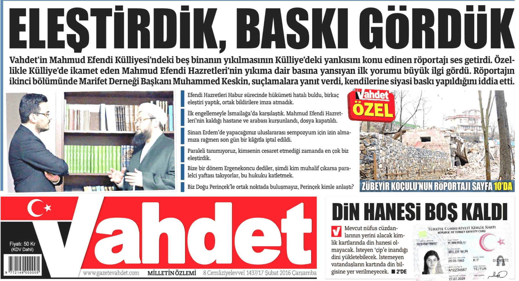 DevamıVahdet’in FETÖ Marifet’i! O gazeteden İsmailağa cemaatine nifak operasyonu!
