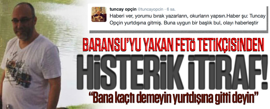 Baransu’yu kullanıp atan “abisi” Fetocu terör örgütünün karanlık tetikçisi Opçin ABD’ye kaçtığını itiraf etti. Sonra da histerik biçimde “Bana kaçtı demeyin, yurtdışına gitti deyin” diye zırvaladı! MEDYAGUNDEM.COM- Fetocu terör örgütünün medyadaki en karanlık tetikçilerinden biri olan Tuncay Opçin’in de ABD’ye kaçtığını dün Yeni Akit gazetesinde Kenan Kıran deşifre etti. Mehmet Baransu’yu …