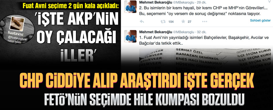 Fetocu terör örgütü artık her türlü hainlik ve şeytanlığa başvurmaktan zerre kadar geri durmuyor. Son olarak Fau Avni isim PİÇtrol (paralel ihanet çetesi trolü) 1 Kasım genel seçimlerinde “Ak hırsızlar” diye bir liste ortaya atarak, Ak Parti’nin seçimde hile yapacağını iddia etti. CHP de hemen o listenin peşine düştü ve …
