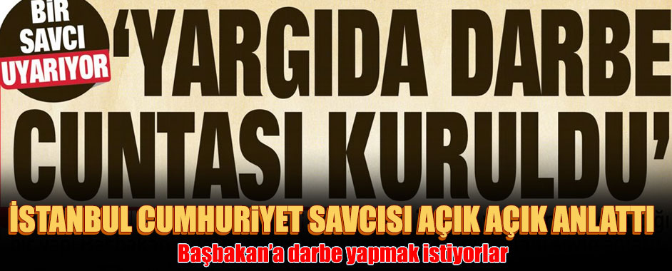 İstanbul Cumhuriyet Savcısı Demir, içinde bazı yargı mensuplarının da olduğu bir yapının Başbakan Erdoğan’a darbe yapmak istediğini belirterek, “Yargının bağımsızlığına ve tarafsızlığına inanan hâkim ve savcılara” darbeye karşı çıkma, seslerini yükseltme çağrısı yaptı. İstanbul Cumhuriyet Savcısı Mehmet Demir bir kısım yargı mensuplarının da aralarında bulunduğu bir yapının Başbakan Recep Tayyip …