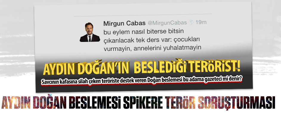 Aydın Doğan’ın kanalı CNN Türk’ün spikeri Mirgün Cabas, Berkin Elvan soruşturması savcısı Mehmet Selim Kiraz’ı şehit eden terör örgütü DHKP-C’yi savunduğu için “terör örgütü propagandası yapmak” suçundan şüpheli sıfatıyla ifadeye çağrıldı. Gezi eylemleri sırasında öldürülen Berkin Elvan’ın soruşturmasını yürüten savcı Mehmet Selim Kiraz’ın saldırıya uğradığı gün sosyal medyadan yapılan paylaşımlarla ilgili …