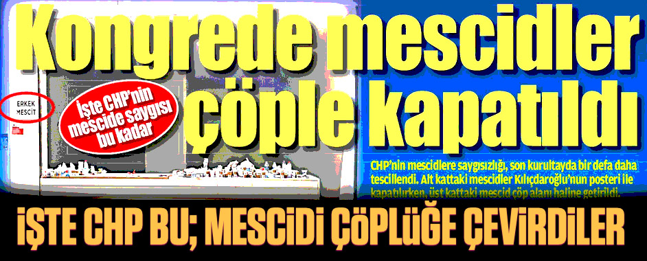 CHP’nin 16-17 Ocak’ta Ankara Arena Spor Salonu’nda gerçekleştirdiği kurultayda, mescidlere saygısızlıkları bir defa daha tescillendi. Kurultay salonunun alt katında bulunan bay-bayan mescidinin kapısını Kılıçdaroğlu posteriyle kapatan CHP’liler, üst kattaki erkek mescidini ise, çay ve su bardaklarının fırlatılıp atıldığı çöp alanı haline getirdiler. Din ve inanç özgürlüğü düzenlemelerini iptal ettirmek için …