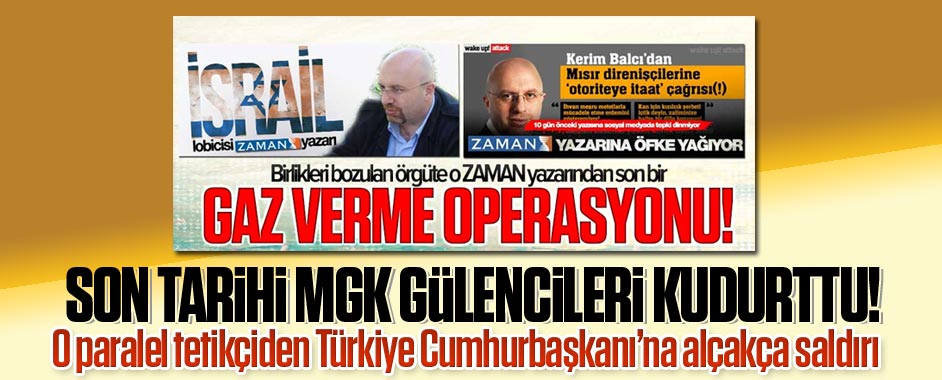 Zaman gazetesi yazarı Kerim Balcı, MGK kararı sonrası Erdoğan’a çok ağır ithamlarda bulundu, Türkiye’nin Cumhurbaşkanı’na resmen hakaretler yağdırdı. Gülen Cemaati’nin Milli Güvenlik Kurulu’nda (MGK) ‘milli güvenliği tehdit eden unsur’ olarak Kırmızı Kitap’a alınması paralel ihanet çetesini kudurttu. Paralel yapı ile mücadelenin Milli Güvenlik Kurulu’nda “Kırmızı Kitap”a girmesi paralel örgütün medyasında …