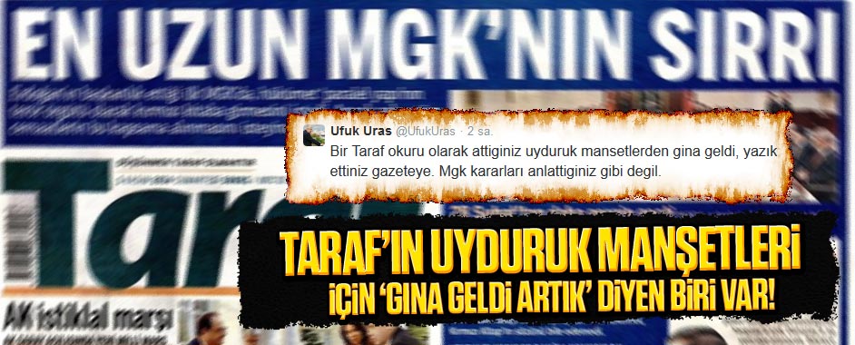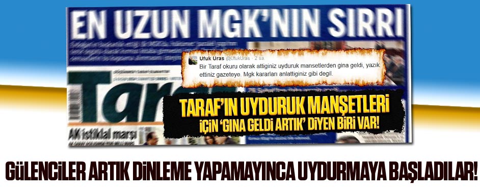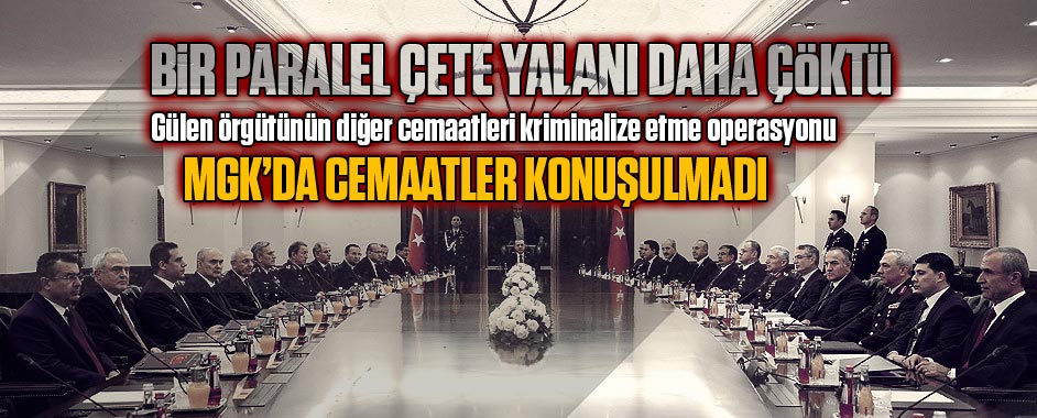 Paralel yapının tetikçiliğini yapan Taraf Gazetesi’nin, askerlerin MGK’da tüm cemaatlerin tehdit kapsamına alınmasını istediği ve bu yüzden karar alınamadığına ilişkin haberinin düzmece olduğu ortaya çıktı. Akit’e konuşan askeri kaynaklar “İllegal dinlemeler kesilince içeride konuşulanları duyamamışlar anlaşılan. Cumhurbaşkanı, Hükümet ve Genelkurmay tam mutabakat içinde. MGK toplantısında ‘devlete paralel tüm yapılanmaların’ tehdit …
