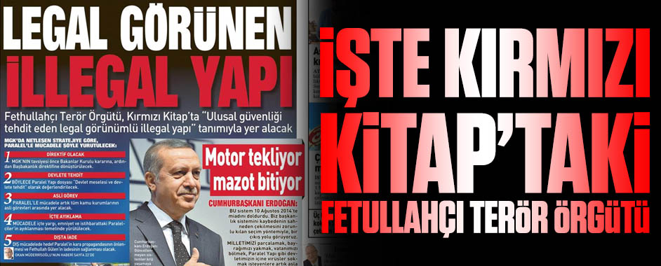 MEDYAGUNDEM.COM- Gülen örgütü dün Cumhurbaşkanı Recep Tayyip Erdoğan’ın ilk kez başkanlığında tarihin en uzun MGK toplantısıyla “Kırmızı Kitap”a bir iç tehdit olarak girdi. Gülen örgütündeki panik MGK ile ilgili yapılan haberlerine de yansıdı. Paralel gazeteciler MGK’nın aldığı kararları “hukuksuz” ilan etme yarışına girerken, Zaman’da Bülent Korucu “Kim takar Kırmızı Kitap’ı” anlamında …