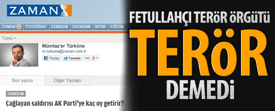 Paralel medyanın devşirme yazarlarından Mümtaz’er Türköne, yine Paralel Suç Örgütü yazarlarına taş çıkartacak çirkinlikte bir yazı kaleme aldı. Çağlayan Adliyesi’ndeki saldırıya “terör” diyemeyen Türköne, cinayetin AK Parti’nin oylarının yükselmesi için işlendiğini söyleyerek her şeye inanmaya kodlanmış paralel örgüt elemanlarını yönlendirmeye çalıştı. DHKP-C’NİN SALDIRISINA “TERÖR” DİYEMEDİ! AK Parti iktidarı ve Cumhurbaşkanı …