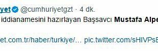 Trafik kazasında hayatını kaybeden Denizli Cumhuriyet Başsavcısı Mustafa Alper için Cumhuriyet Gazetesi resmi Twitter hesabından atılan çirkin tweet sebebiyle tutuklanarak cezaevine konan Cumhuriyet Gazetesi internet genel yayın yönetmeni Oğuz Güven hakkındaki soruşturma tamamlandı. Trafik kazasında hayatını kaybeden Denizli Cumhuriyet Başsavcısı Mustafa Alper hakkında Cumhuriyet Gazetesi resmi Twitter hesabından atılan “İlk …