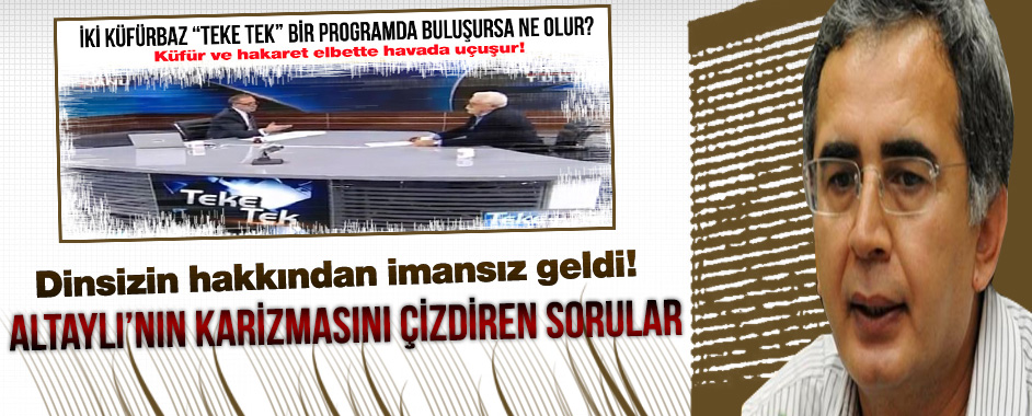 MEDYAGÜNDEM- Habertürk TV’deki Teke Tek programına çıkardığı Levent Kırca ile tarihe geçecek bir rezil programa imza atan Altaylı’nın karizması fena çizildi. Küfür ve hakaretlerin havada uçuştuğu programla büyük tepki toplayan Altaylı’ya bugün başka bir “küfürbaz”, Vatan yazarı Mustafa Mutlu da fena vurdu. “Dinsizin hakkından imansız geldi” durumu da ortaya çıktı. …