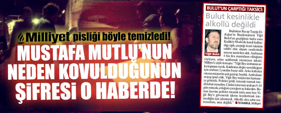 MEDYAGUNDEM.COM- Bugün Demirören Grubu’na ait Milliyet gazetesinde yer alan ve Vatan ile Milliyet’in internet sitelerinde de manşetlere çekilen bir haber Mustafa Mutlu’nun neden kovulduğunun şifrelerini ele veriyor. Vatan’ın “küfürbaz yazarı” Mustafa Mutlu son yazısında Yiğit Bulut’un geçtiğimiz gün yaşadığı ufak trafik kazasında içkili olduğunu iddia edip, “Ama senin oradan ‘kaçman’ …