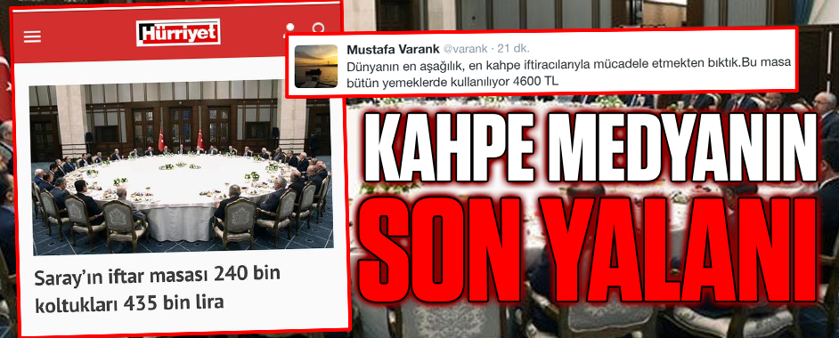 Hürriyet, Sözcü ve Cumhuriyet başta olmak üzere medya kuruluşlarının algı yönetmeye çalıştığı iftar masasında daha önce Kemal Kılıçdaroğlu ve Devlet Bahçeli’nin de oturduğu ve aynı gazetelerin o dönemde haber yapmadığı ortaya çıktı. Cumhurbaşkanlığı Sarayı’nda Erdoğan’ın din alimlerine verdiği iftarda kullanılan masa ve diğer kaşık tabakları fahiş fiyatta oldukları propagandası yaparak, …