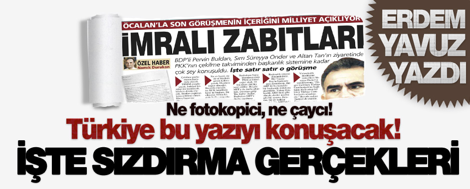MEDYAGÜNDEM- Milliyet’te Namık Durukan imzalı “İmralı zabıtları” manşeti gündemi alt üst etti. Haberin yansımalarına bakıldığında mesele “O tutanakları kim, niye sızdırdı?” noktasında düğümleniyor. Abdullah Öcalan’ın sözlerine bakıldığında bu tutanakları sızdıranların pek de “halis” amaçlar gütmediği şüphesi ortaya çıkıyor. Twitter’da da gazeteciler bu noktada çekincelerini paylaştı. Türkiye, Milliyet’in manleti kadar o …
