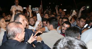 Erdoğan, Cumhurbaşkanlığı Külliyesi etrafında demokrasi nöbetini sürdüren vatandaşlarla bir araya geldi. Cumhurbaşkanı Recep Tayyip Erdoğan, Cumhurbaşkanlığı Külliyesi etrafında demokrasi nöbetini sürdüren vatandaşlarla bir araya geldi. Fetullahçı Terör Örgütü’nün (FETÖ) darbe girişimi sonrası demokrasiye sahip çıkma adına yurt genelinde sokaklara dökülen vatandaşların demokrasi nöbeti sürüyor. Cumhurbaşkanlığı Basın Merkezinden paylaşılan görüntülere göre, …