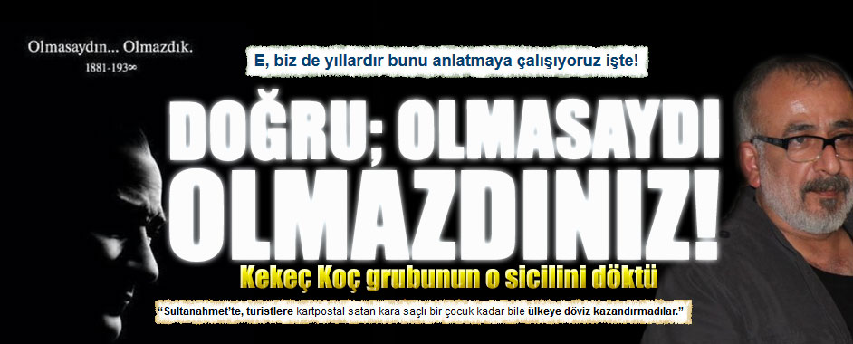MEDYAGUNDEM.COM- Koç Holding ilan verdi ya “Olmasaydın, olmazdık” diye, memlekette şimdi de ilan savaşları yaşanıyor. Ama Koç Holding’in varlığını Atatürk’e bağlayan ilanın “ontolojik analizi”ne bugün Star gazetesinde Ahmet Kekeç girdi. “E, biz de yıllardır bunu anlatmaya çalışıyoruz işte!” diyen Kekeç, Koç Holding’in sicilini isim vermeden şöyle anlattı: “Hani, ‘Olmasaydın, olmazdık’ …