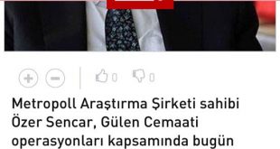 Metropoll Araştırma Şirketi sahibi Özer Sencar, FETÖ operasyonları kapsamında bugün gözaltına alındı. Metropoll Araştırma’nın sahibi Özer Sencar’ın FETÖ soruşturması kapsamında gözaltına alındığı bildirildi. Bilgilendirmeyi Sencar’ın Twitter hesabı üzerinden yakınları yaptı. Sencar’ın hesabından “Özer Sencar bugün FETÖ/PDY soruşturması kapsamında hakkındaki bir iddia nedeniyle yapılan arama sonrasında gözaltına alınmıştır” yazıldı. FETÖ medyasının …