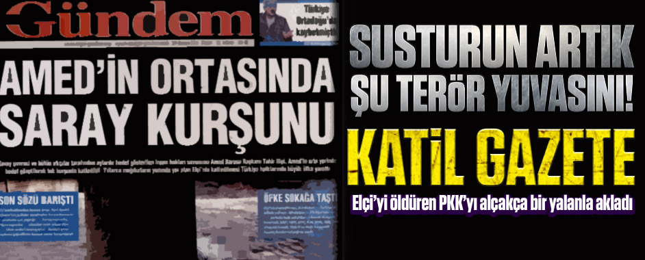 Diyarbakır Baro Başkanı Tahir Elçi, PKK’ya da “hendekleri kapatın” çağrısı yapacağı sırada PKK tarafından öldürüldü. Katili PKK’lı Mahsun Gürkan olduğu ortaya çıktı. Ancak PKK’nın yayın organı Özgür Gündem gazetesi bugün “Amed’in ortasında Saray kurşunu” manşetiyle çıktı. PKK terör örgütünün gazetesi Elçi’yi Cumhurbaşkanı Erdoğan’ın öldürdüğünü iddia edecek kadar aşağılık ve alçak …