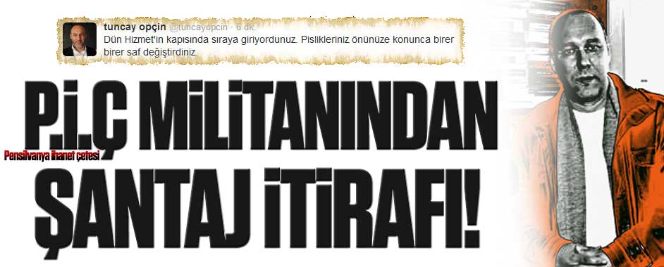 MEDYAGUNDEM.COM- Paralel ihanet çetesinin inlerine girildikçe bomba gibi itiraflar da gelmeye başladı. P.İ.Ç (Pensilvanya ihanet çetesi) resmen çözüldü. Haşhaşi örgütünün müptezel tetikçilerinden Tuncay Opçin, Gülen örgütünün şantaj yaptığının itirafını Twitter’da şöyle yaptı: Opçin bu twitleri özellikle bazı demokrat gazetecileri tehdit ettiği mesajlarının ardından yazdı. “Pislikleriniz önünüze kondu” demek, Gülen örgütünün herkese …