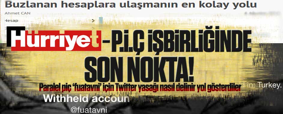 MEDYAGUNDEM.COM- Tüm medya grubunu Pensilvanya ihanet çetesine (P.İ.Ç) tetikçi yapan Aydın Doğan’ın bu hain örgütle işbirliği tam gaz devam ediyor. Gülen örgütünün gayrimeşru operasyon hesabı, paralel piç “fuatavni”nin Twitter tarafından Türkiye’de buzlanmasının ardından, Hürriyet de “Dert etmeyin, Fuat Avni nasıl takip edilir” hizmeti verdi. Hürriyet “fuatavni” isimli paralel piçi takip …