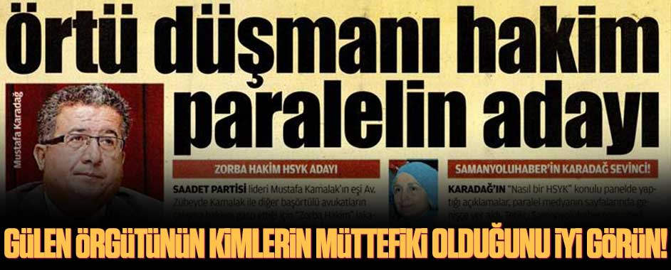 Saadet Partisi lideri Mustafa Kamalak’ın eşi Av. Zübeyde Kamalak ile diğer başörtülü avukatların çalışma hakkını gasp ettiği için “Zorba Hakim” lakabıyla anılan Hakim Mustafa Karadağ, 12 Ekim’de yapılacak olan HSYK seçimleri için YARSAV ile Yargıçlar Sendikası ve paralel yapının ortak adayı oldu. Danıştay’ın kararına rağmen bir yılı aşkın süre boyunca …