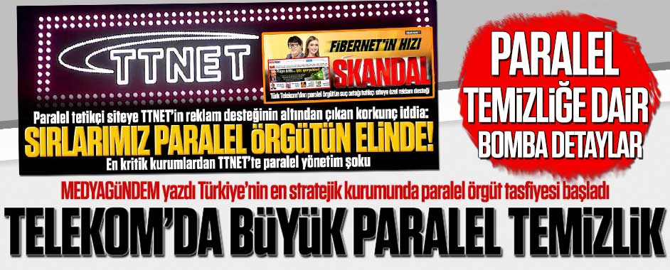 MEDYAGUNDEM.COM- Tam iki hafta önce TTNET’in imza attığı paralel skandalı yazıp, şu manşeti atmıştık: Ve haberimizden sonra Türk Telekom yetkilileri düğmeye bastı ve kurum içinde “paralel temizlik” başlatıldı. Görevden alınanlardan biri de MEDYAGÜNDEM’in açıkladığı isimlerden TTNET Genel Müdür yardımcısı Şahin Şen oldu. Zaman, Sözcü, Bugün, Taraf gazeteleriyle, internet sitelerine ve Rotahaber gibi …