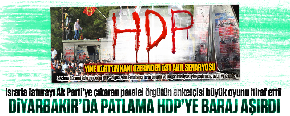 Seçimden 2 gün önce Diyarbakır’da HDP’nin mitinginde patlatılan bombanın tamamen HDP’ye baraj aştırmak için bir “üst akıl” operasyonu olduğunu yazdık. Seçim sonrasında gelen analizlerden birine göre HDP barajı o bomba sayesinde aştı. Analizi paralel örgüte yakın anket firmasının sahibi MetroPoll Araştırma Şirketi Başkanı Özer Sencar’ın yapması da dikkat çekici. Çünkü …