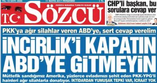 Suriye’de PYD/PKK’yı silahlandıran Pentagon’un derdi 16 Mayıs’ta ABD Devlet Başkanı Donald Trump ile Cumhurbaşkanı Recep Tayyip Erdoğan’ın görüşmesini engellemek. ABD’deki çeteyle eş zamanlı biçimde CHP ce FETÖ Sözcü’sü gazete de “Erdoğan ABD’ye gitmesin” kampanyası başlattı. Bugün Sözcü’nün attığı manşet bir Pentagon planı. Pentagon’un derdini de Türkiye gazetesinde Batuhan Yaşar yazdı. …
