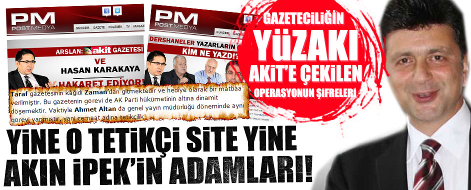 MEDYAGUNDEM.COM- Cemaatin yayın organlarından Bugün Gazetesinin Ankara Temsilcisi Adem Yavuz Arslan tarafından gazeteciliğin ve Müslümanların yüzakı Akit’e atılan iftiranın perde arkasında yine cemaat medyasının kirli operasyonları çıktı. Taraf’ı Akit’in bastığı yalanını ortaya atan Akın İpek’in “operasyoncusu” Adem Yavuz Arslan’ın asıl gerçeği gizlediği ortaya çıktı. Yeni Akit gazetesi yayın kurulu üyesi …