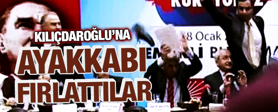 CHP lideri Kılıçdaroğlu’na emeklilerle buluşma adıyla yapılan toplantıda ayakkabı fırlatıldı. CHP Genel Başkanı Kemal Kılıçdaroğlu’na katıldığı bir toplantıda ayakkabı fırlatıldı. Ayakkabı Kılıçdaroğlu’na isabet etmedi. Saldırgan salondan çıkarıldı. “BU DÜZENİN ALLAH BELASINI VERSİN” DİYEREK FIRLATTI CHP lideri Kılıçdaroğlu’na “Emeklilerin Sorunları ve Çözüm Önerileri adlı toplantıda ayakkabı fırlattılar. “Bu düzenin Allah belasını …