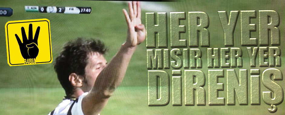 MEDYAGUNDEM.COM- Konya’da Torku Konyaspor ile deplasmanda karşılaşan Fenerbahçe’yi 2-0 öne geçiren golü atan Emre Belözoğlu, attığı gol sonrası Mısır’daki darbe karşıtlarını “Rabia” işaretiyle selamlayarak, Mısır’daki darbeye karşı direnenlere destek mesajı gönderdi. “Rabia” işareti, Mursi yandaşlarının toplandığı Rabiatul Adeviye Meydanı’ndan geliyor. Rabia, Arapça’da 4’üncü anlamını taşıyor. ÇAYKUR RİZESPORLU SERCAN’DAN DA RABİA İŞARETİ …
