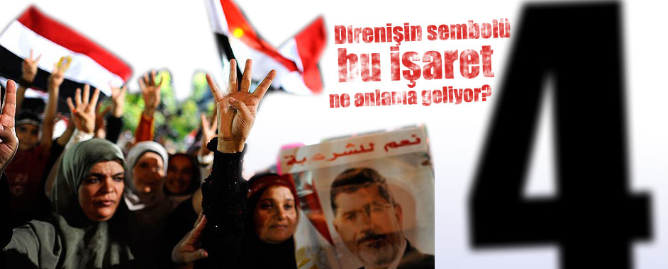 Mısır’da katliamın yapıldığı Rabiatül Adevviye Meydanı’nın ve darbe karşıtı gösterilerin sembolü dört parmakla yapılan “Rabia işareti” oldu. Arapçada “dördüncü, dört” anlamına gelen “Rabia” kelimesi Mısır’da darbe karşıtı direnişinin sembolü oldu. Katliamdan bir kaç saat önce Rabiatul Adeviyye Meydanı’nı dolduran onbinlerce kişi elleriyle “dört” işareti yaparak mesajlarını dünyaya duyurmaya çalışıtı. Anadolu …