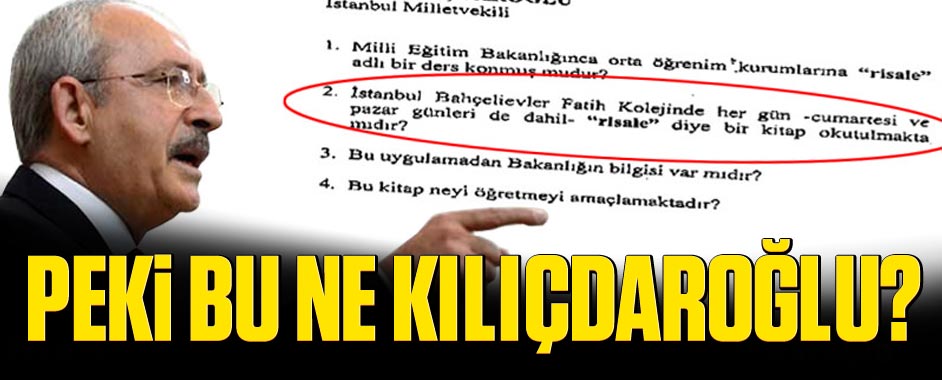 Hükümetin korsancılara ve tahrifatçılara yönelik yasal düzenlemesini “Bediüzzaman’ın Risale-i Nur Külliyatı yasaklanıyor” şeklinde çarpıtarak Anayasa Mahkemesi’ne götüren CHP lideri Kemal Kılıçdaroğlu’nun 2005 yılında “Cemaat okullarında Risale-i Nur okunuyor, bilginiz var mı?” diyerek soru önergesi verdiği ortaya çıktı. Kılıçdaroğlu’nun İstanbul’da eğitim faaliyetleri yürüten Fatih Koleji’nde Bediüzzaman Said Nursi’nin eseri olan Risale-i …