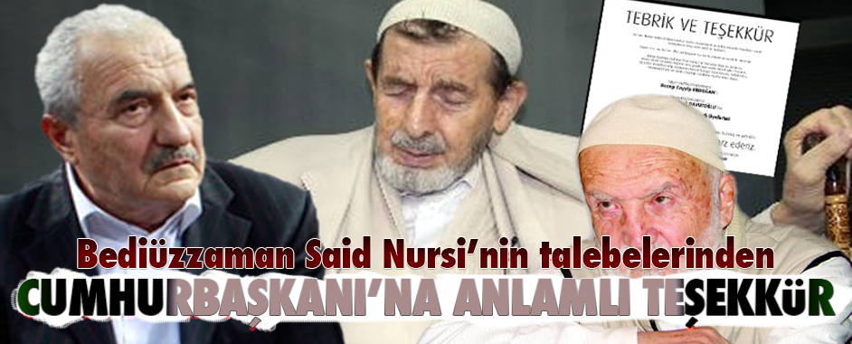 Bediüzzaman Said Nursi’nin hayattaki talebeleri Risale-i Nur külliyatını korsancılar ve tahrifatçıların tekelinden kurtaran yasal düzenlemeyi hazırlanmasına katkıları olan Cumhurbaşkanı Erdoğan ve Başbakan Davutoğlu’na gazete ilani ile teşekkür etti. Bediüzzaman Said Nursi’nin hayattaki talebeleri Risale-i Nur külliyatını korsancılar ve tahrifatçıların tekelinden kurtaran yasal düzenlemeyi hazırlanmasına katkıları olan Cumhurbaşkanı Recep Tayyip Erdoğan …