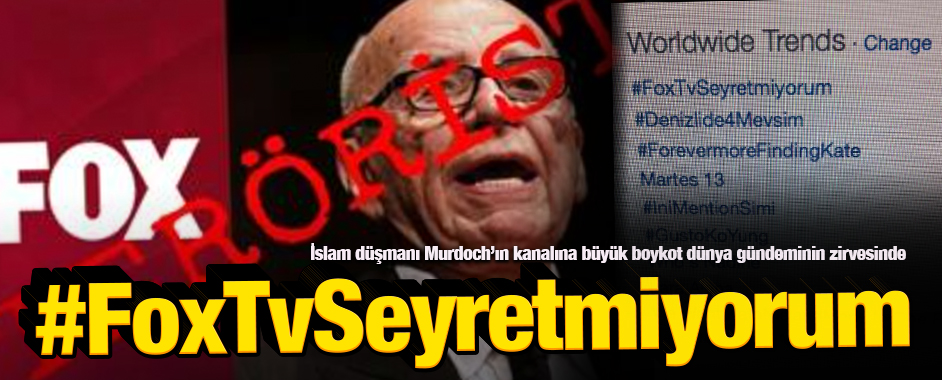 Fransa’da Charlie Hebdo dergisine yapılan terörist saldırıdan tüm Müslümanları sorumlu tutup, İslam’a düşmanlığını kusan Yahudi medya patronu Murdoch’ın Türkiye’deki kanalı Fox TV’ye boykot kampanyası başladı. Twitter’da #FoxTvSeyretmiyorum etiketi dünya gündeminin birinci sırasında yer aldı. Sosyal medyada Fox TV izleme, izlettirme kampanyası dalga dalga yayıldı. İşte bazı tepkiler: