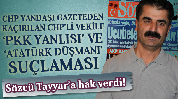 MEDYAGÜNDEM- CHP’ye verdiği destekle bilinen, “CHP yandaşı” gazete olarak nitelendirilen Sözcü’den şok bir başyazı… Sözcü’nün birinci sayfasındaki başyazıda CHP Tunceli Milletvekili Hüseyin Aygün hakkında şok suçlamalar yapıldı, Şamil Tayyar’ın haklı olabileceği ihtimalinden söz edildi. Aygün için “PKK yanlısı, Kürtçü, Atatürk ve İnönü düşmanı” diye söz edilen yazıda, “Şamil Tayyar haklı …