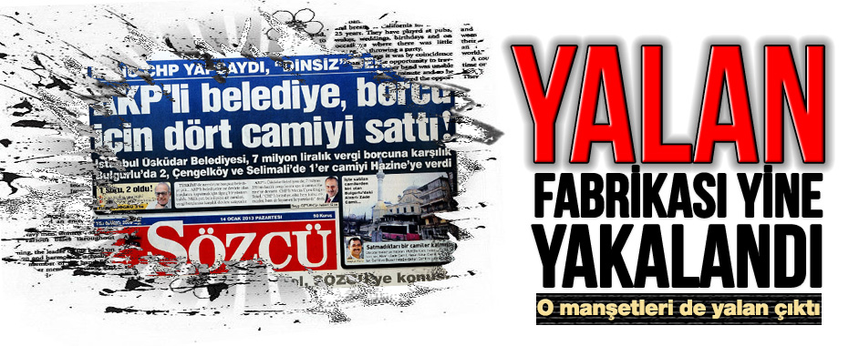 Sözcü denilen paçavranın, Üsküdar Belediyesi’nin vergi borcuna karşılık mülkiyeti kendisinde bulunan dört camiyi sattığı iddiası yalan çıktı. Sözcü gazetesinden Saygı Öztürk,“AKP’li Üsküdar Belediyesi toplam 7 milyon 370 bin liralık vergi borcuna karşılık mülkiyeti kendinde bulunan dört camiyi sattı.” diye haber yaptı. Üsküdar Belediyesi konuya ilişkin açıklamayla iddianın yalan olduğunu duyurdu. …