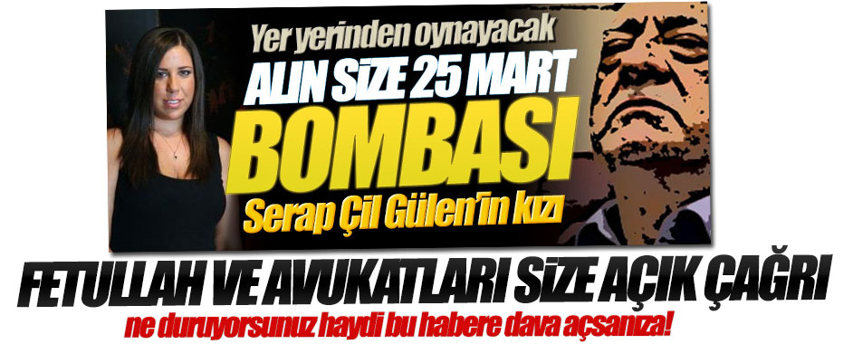 DevamıALIN SİZE 25 MART BOMBASI! OLAY İSİM FETULLAH GÜLEN’İN KIZI MI?