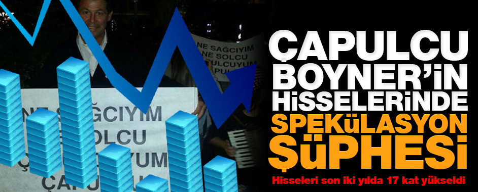 ‘Çapulcu’yum diyen Cem Boyner’in sahip olduğu şirket hisselerinde son iki yılda 17 kat yükseliş yaşandı. Borsa çevreleri bunun nedenini merak ediyor. Hükümetin borsada spekülasyon yapanlara karşı yaptığı uyarı ve Sermaye Piyasası Kurulu’nun başlattığı inceleme, gözlerin son dönemde sert hareket gösteren hisselere çevrilmesine neden oldu. Bu hisselerden biri de “Ne sağcıyım, …