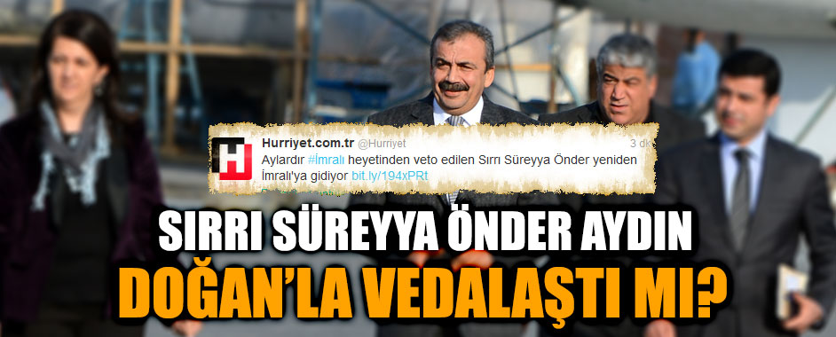 MEDYAGUNDEM.COM- Sırrı Süreyya Önder üzerinde Aydın Doğan mı yoksa Öcalan mı daha nüfuz sahibidir diye bir soru sorulsa bizce cevap Aydın Doğan olur. Kimi zaman Doğan grubunun bir “memuru” gibi davranan Önder’in 6 ay sonra İmralı’ya gideceği haberi de Doğan medyasınca duyuruldu. Hürriyet’in internet sitesi Önder’e İmralı vetosunun kaldırıldığını duyurdu. …