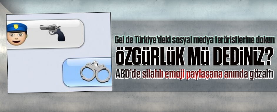 Amerika’da 17 yaşındaki genç, sosyal medyada paylaştığı emoji ifadeleri yüzünden gözaltına alındı. Akıllı telefonlarda bulunan emoji ifadeleri insanlara duygularını daha rahat anlatabilmeleri için yardımcı oluyor. Ancak Amerika’da yaşanan olay bu ifadelerin insanların başını derde sokabileceğini gösterdi. Asıl önemlisi “özgürlükler ülkesi” ABD’deki bu gelişme Türkiye’deki sosyal medya teröristlerinin ne kadar özgür …
